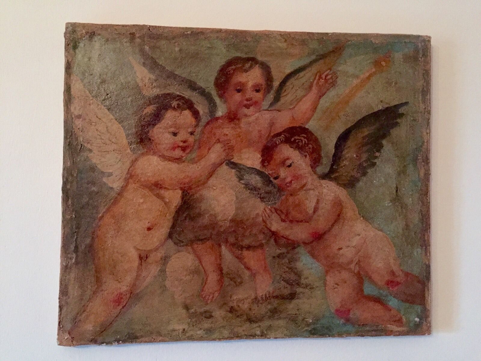 ” Provengono da murature private come ville, cappelle, e soffitti di palazzi storici che per qualche ragione devono essere “modernizzati”, in quei casi gli affreschi vengono staccati e posti su tela. Va anche detto che tra gli anni ’50 e gli anni ’70 ne sono stati staccati una quantità indefinita, non c’erano dei vincoli ristrettì come oggi e restauratori e commercianti hanno staccato oltre il limite consentito proprio al solo scopo di lucro. C’era RVC restauri un’azienda di restauri di Firenze che si occupava di conservazione ma che allo stesso tempo staccava per commerciare. Una certa quantità di affreschi toscani infatti si trovano nei musei americani, di certo una buona parte sono stati venduti proprio da loro in modo legittimo, erano anni in cui si poteva tutto. Ancora oggi in alcune zone d’Italia ci sono una quantità importante di affreschi decorativi che non hanno una grande valenza storica ma che dal punto di vista della decorazione sono una meraviglia assoluta ”