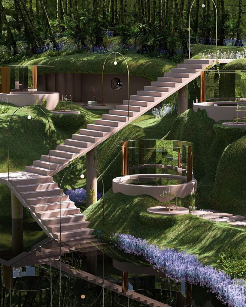 Il giovane artista e designer digitale Paul Milinski immagina nuovi spazi in cui il verde della natura incontra gli oggetti e le architetture dell’uomo