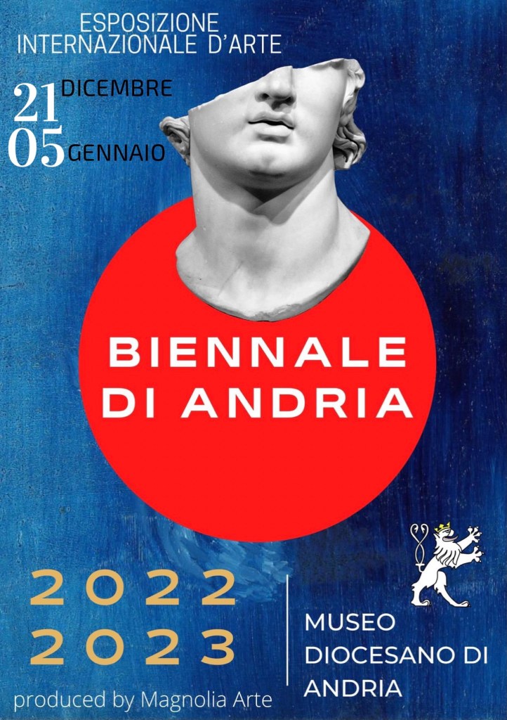 Dal 21 Dicembre 2022 al 05 Gennaio 2023 inaugurerà la prima edizione dell’esposizione Internazionale d’Arte ad Andria, “ Biennale di Andria “ imperdibile kermesse artistica che si svolgerà nel prestigioso Museo Diocesano “San Riccardo”, ubicato in Via Domenico de Anellis 46, definita ottima la collocazione urbanistica, il Museo si trova in pieno centro storico, a due passi dalla Cattedrale di Andria, dal Palazzo Vescovile, dal Palazzo Ducale e da altre chiese, come San Francesco, San Domenico e San Nicola, che contribuiscono, insieme al Museo stesso, alla creazione dell’entità del patrimonio storico, artistico e religioso cittadino.