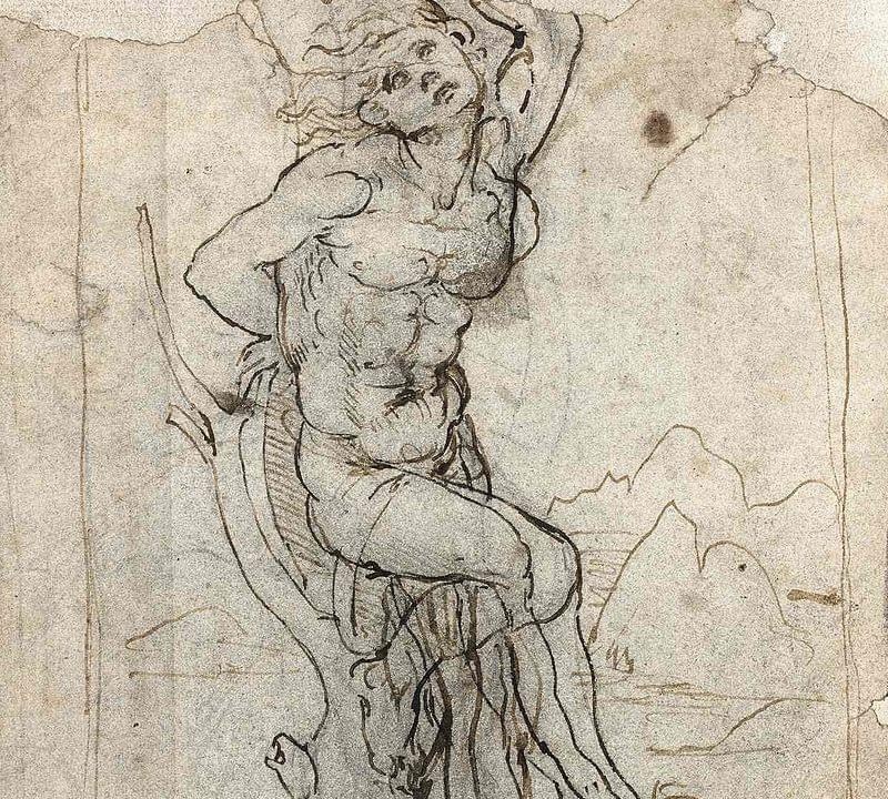 Si tratta del «Martirio di san Sebastiano»: disegno a penna e inchiostro su carta (19,3 × 13 cm).