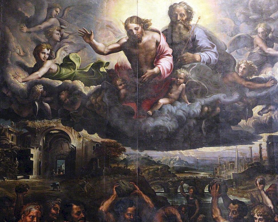 Consiglio a chi ha la possibilità di andarlo a visitare, perché si tratta di un capolavoro unico, sospeso nel tempo. Giulio Romano doveva avere bene in mente i modelli più recenti di innovative pale d’altare, quali la Trasfigurazione di Raffaello e la Resurrezione di Lazzaro di Sebastiano del Piombo, su disegno di Michelangelo. Giulio tentò di fondere le due maniere, creando una scena su due registri, concitata e ricca di variazioni luminose, che si sciolgono nella visione del santo inginocchiato in primo piano e nell’apparizione della Trinità in alto, a cui Stefano si rivolge.