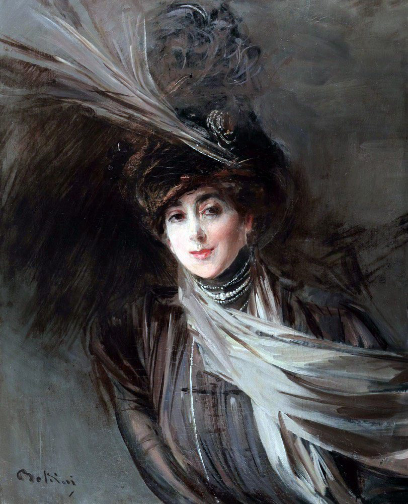 A rendere universalmente noto ed amato Boldini resta la carriera ritrattistica, suo genere pittorico prediletto, attraverso il quale lascerà un segno indelebile nel suo tempo, divenendo il più raffinato interprete della “femminilità suprema” e della “pariginità” della donna moderna. Sul finire del secolo Boldini perfeziona il ritratto mondano nel segno di una eleganza estrema che tende ad astrarre il personaggio raffigurato in una dimensione a parte, ma che risulta così inserito nello spirito del tempo da divenirne emblema e icona. Ne sono un esempio, tra gli altri, gli splendidi ritratti di Miss Bell (1903), La passeggiata al Bois de Boulogne (1909) e Ritratto della principessa Radziwill, 1910.