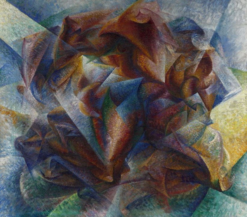 Arduo lasciare da parte la vicenda politica e mediatica (e ben poco culturale) che ha accompagnato fin dall’inizio “Il tempo del Futurismo” (un tempo brevissimo almeno dal punto di vista espositivo: chiuderà il 28 febbraio, una finestra davvero esigua per un progetto nato e dichiarato ambizioso, in un momento tra l’altro in cui le mostre hanno lunghe teniture – ma, come qualcuno forse ricorderà, lo mostra doveva aprire a ottobre) e che non serve qui riassumere. Basterà osservare che era difficile che non finisse così, viste le premesse che affondano nel dirigismo “Italy first” (Tolkien a parte) dell’ex ministro Sangiuliano, oggi riemerso per ricordarci di essere un entusiasta biografo trumpiano, e in un pressapochismo nella gestione della componente organizzativa, a partire dall’incapacità di costruire un comitato scientifico.